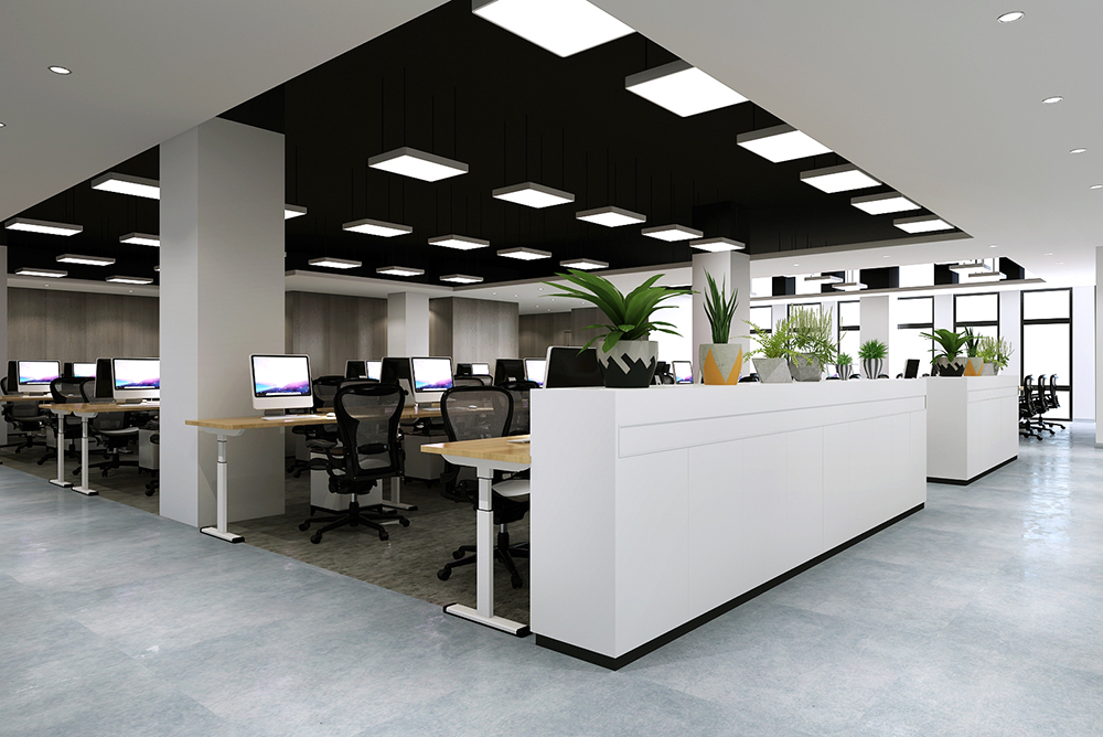 設(shè)計(jì)理念:辦公室裝修室內(nèi)界面處理宜簡(jiǎn)潔,著重營(yíng)造空間的寧?kù)o氣氛,并考慮到便于各種管線的鋪設(shè)、更換、維護(hù)、連接等需求。隔斷屏風(fēng)選擇適宜的高度,如需保證空間的連續(xù)性,可根據(jù)工作單元及辦公組團(tuán)的大小規(guī)模進(jìn)行合理選擇。
