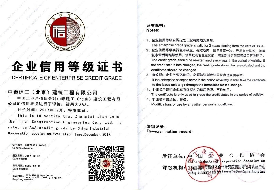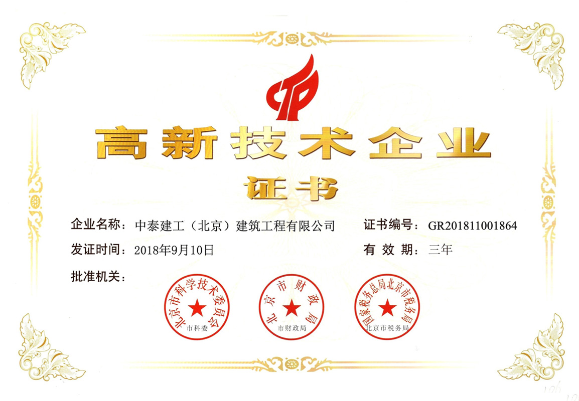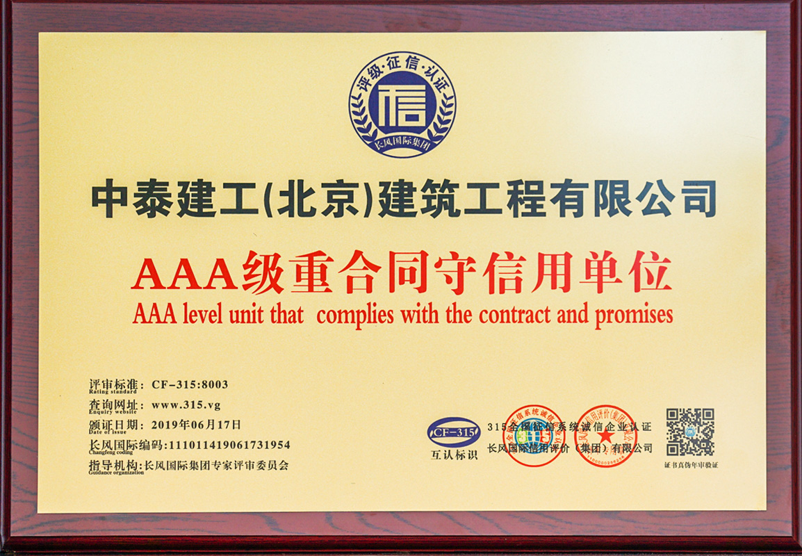 2015 年 9 月公司順利通過(guò) IS9001 國(guó)家質(zhì)量標(biāo)準(zhǔn)認(rèn)證;2017年12月被評(píng)為AAA企業(yè)并頒發(fā)企業(yè)信用等級(jí)證書(shū);2018年1月30日被評(píng)為中關(guān)村高新技術(shù)企業(yè)。擁有各類(lèi)大中型工程機(jī)械設(shè)備及檢測(cè)儀器。